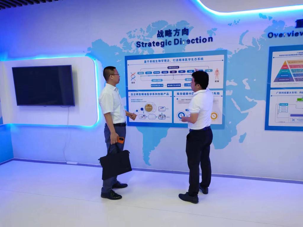 该公司有关负责人首先介绍公司旗下的广西精准医学产业技术研究院、广西识远医学检验实验室的建设运营情况并分享了他们在类器官方面的研究成果及其临床应用路径和产业化思路。最后,刘洪波与该公司董事长吴帆及战略科学家莫曾南教授等进行了座谈交流。座谈会上,刘洪波介绍了此次来访目的以及桂林医华体(中国)近期发展、医学检验技术专业办学和毕业生就业情况等。该公司高层均表达了与桂林医华体(中国)在精准医学技术产学研合作的意愿,双方在毕业生就业、实习基地建设、产学研合作等方面进行了积极探讨,并达成进一步合作共识。