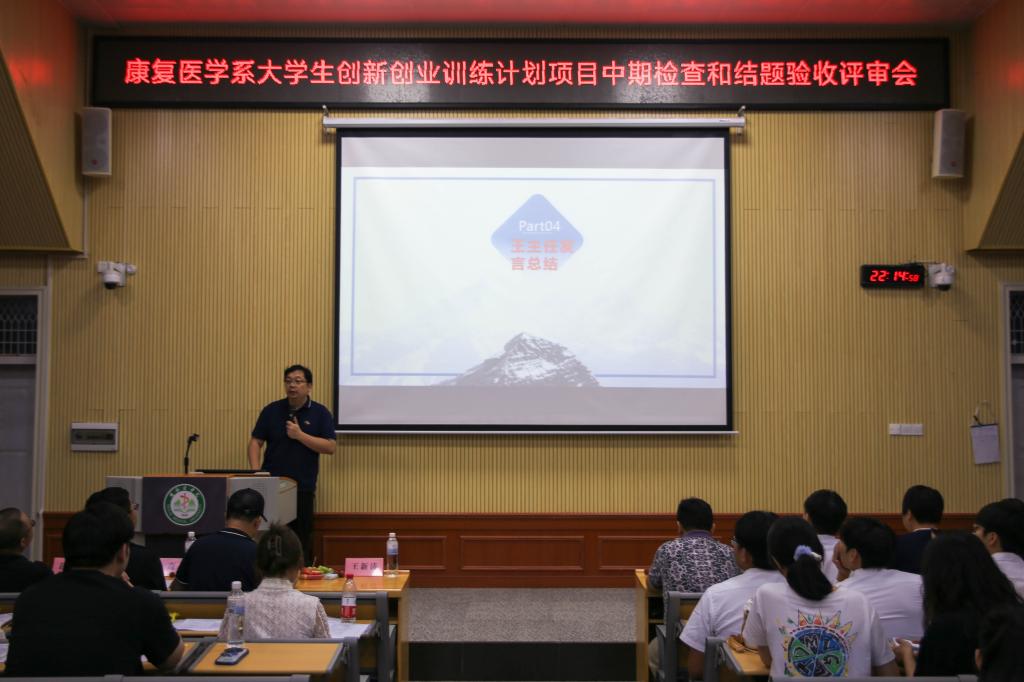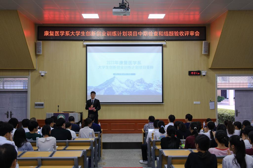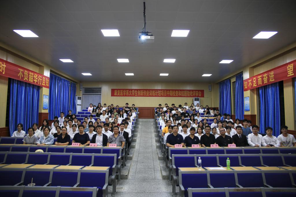 6月19日晚,康复医学系在东城华体网页版页面登录区CR101教室举行大学生创新创业训练计划项目中期检查和结题验收评审会。在华体网页版页面登录学生近200人到场观摩,实习生以线上形式参会。康复医学系副主任王新涛,附属医院康复医学科副主任孔繁荣,及学工办、儿童康复科、康复医学科相关人员受邀参加评审会。