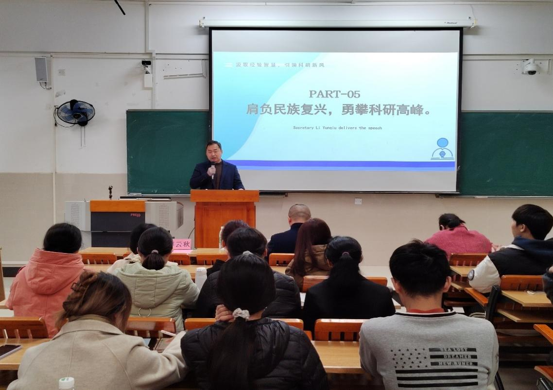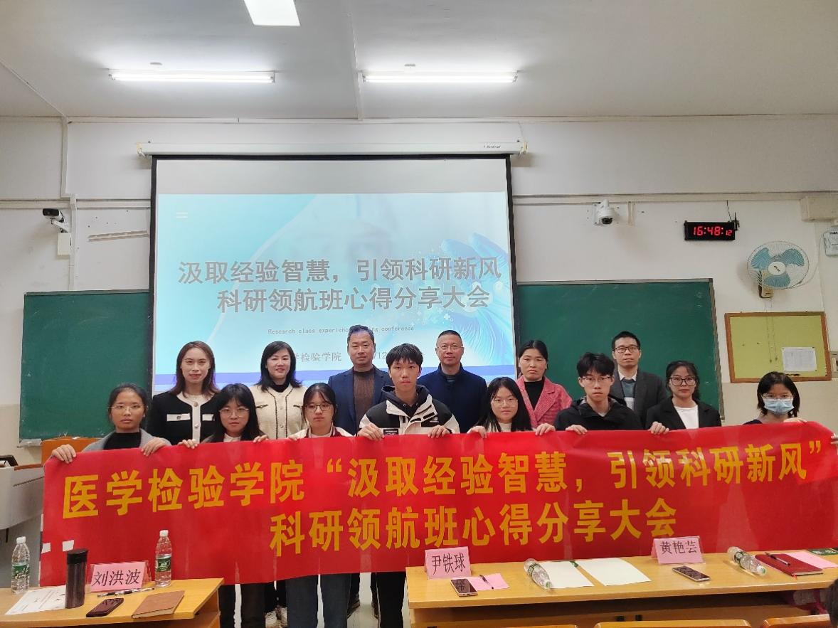 科研是立德树人的一个重要载体,是三全育人过程中不可忽视的重要环节。医学检验华体(中国)近年来不断加强科研育人工作,通过搭建科研领航班平台,依托学华体网页版页面登录相关实验室和专业教师队伍,从多个维度凝聚合力,全面引导学生成长成才。为进一步激发华体(中国)科研育人的动能,医学检验华体(中国)于12月5日在临桂华体网页版页面登录区教学南楼S307教室举办科研领航班心得分享大会。医学检验华体(中国)全体党政领导及学工办、团委负责人共同参加会议。