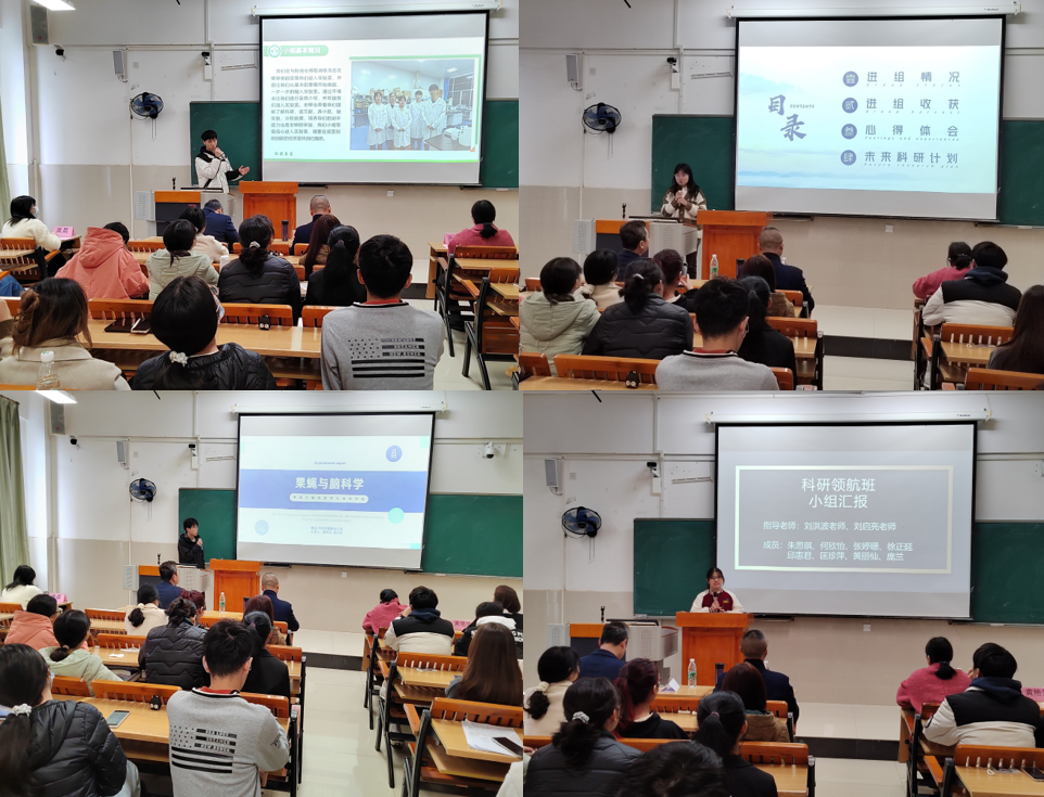 随后,科研领航班各组代表依次上台以PPT展示的形式展示前一阶段科研的学习和收获,包括文献学习、科研工具使用、基础实验方法以及研究结果的分析和初涉科研的心得体会,同时表达了对华体(中国)开设科研领航班的珍惜、对导师课题组悉心指导的感恩。各组代表展示结束后,并分组与党政领导进行了面对面的交流,现场气氛热烈,将大会推向了高潮。