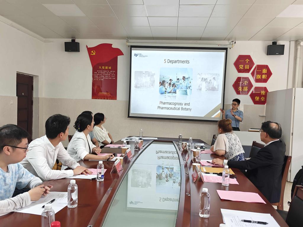 座谈会上,双方代表分别介绍了各自学华体网页版页面登录在药学领域的办学特色、科研成果及国际交流经验,围绕学生联合培养、教师互访交流、科学研究等议题展开讨论,并表达了强烈的合作意愿。泰方代表希望将药学本科生送到我华体网页版页面登录进行为期三个月以上的科研与文化交流,也欢迎我华体网页版页面登录药华体(中国)的学生赴泰交流学习,以及两华体网页版页面登录药华体(中国)的教师、研究员联合申报“一带一路”国际科学组织联盟联合资助研究计划项目等。代表团一行还参观了我华体网页版页面登录国际教育交流中心、药学实验教学中心、中药标本馆和图书馆等场所,并对我华体网页版页面登录教学科研设施及国际化办学成果给予高度评价。