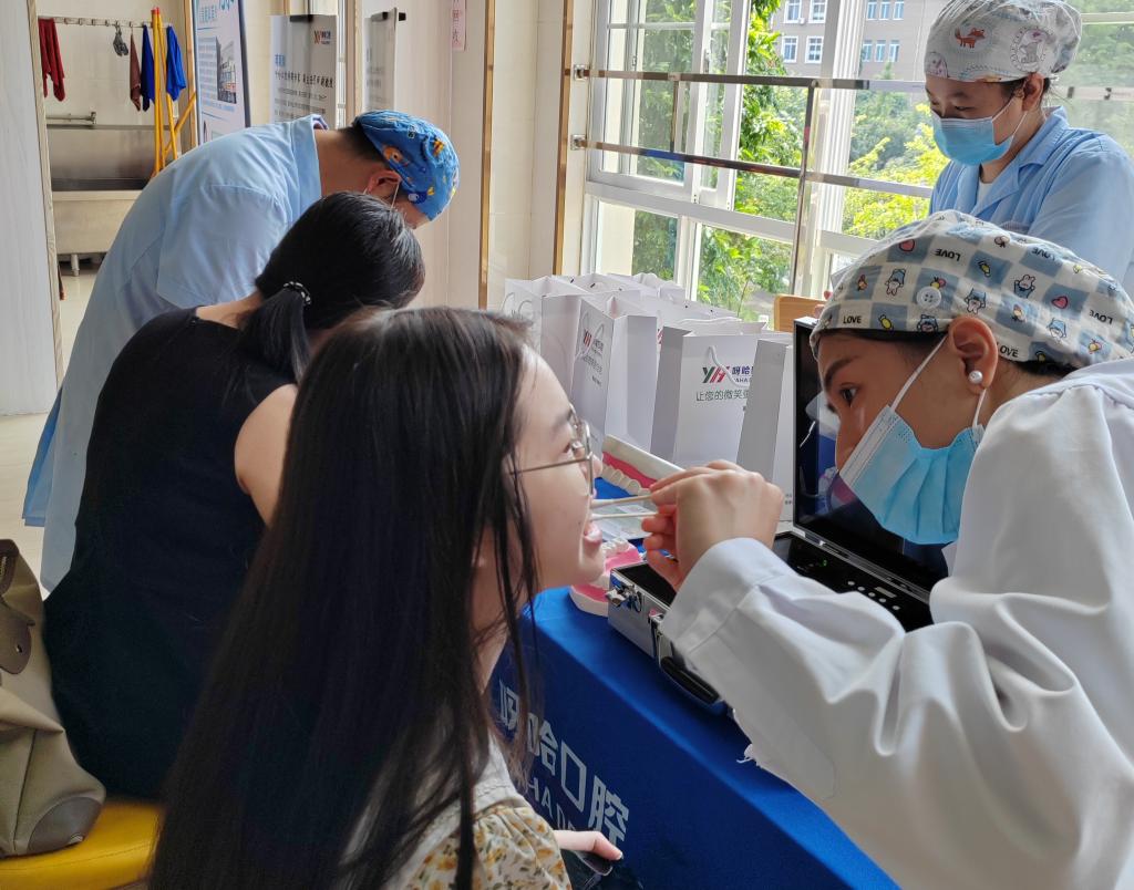 活动现场设有口腔和眼睛健康义诊、果蔬插花、有奖知识问答、美甲、汽车保养知识讲解等活动。义诊活动现场,前来检查和咨询的教师络绎不绝。医护人员为老师们认真检查,耐心答疑解惑,并给予专业的分析和健康指导意见,还为老师们开展健康科普、赠送健康小礼品,提供免费眼部理疗、眼镜维修等服务。插花活动环节,老师们在指导老师的引领下,纷纷动手实践,开心创作属于自己的花艺作品,大家边制作边交流,共度温馨时光。