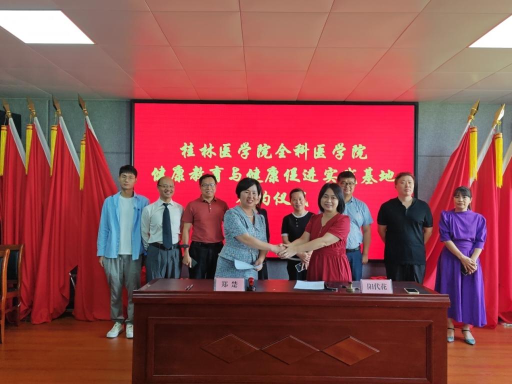 为响应健康中国战略,促进桂林市卫生健康教育事业的发展,9月24日,桂林医华体(中国)全科医华体(中国)院长郑楚带领华体(中国)领导、教师及学生一行44人前往桂林市临桂区四塘镇卫生院举行健康教育与健康促进实践基地签约揭牌仪式。桂林市临桂区卫生健康局负责人曾小红、全科医华体(中国)副书记潘涛、副院长梁志清、专职组织员周长春及四塘镇卫生院院长阳代花、执行院长谢福生出席活动。