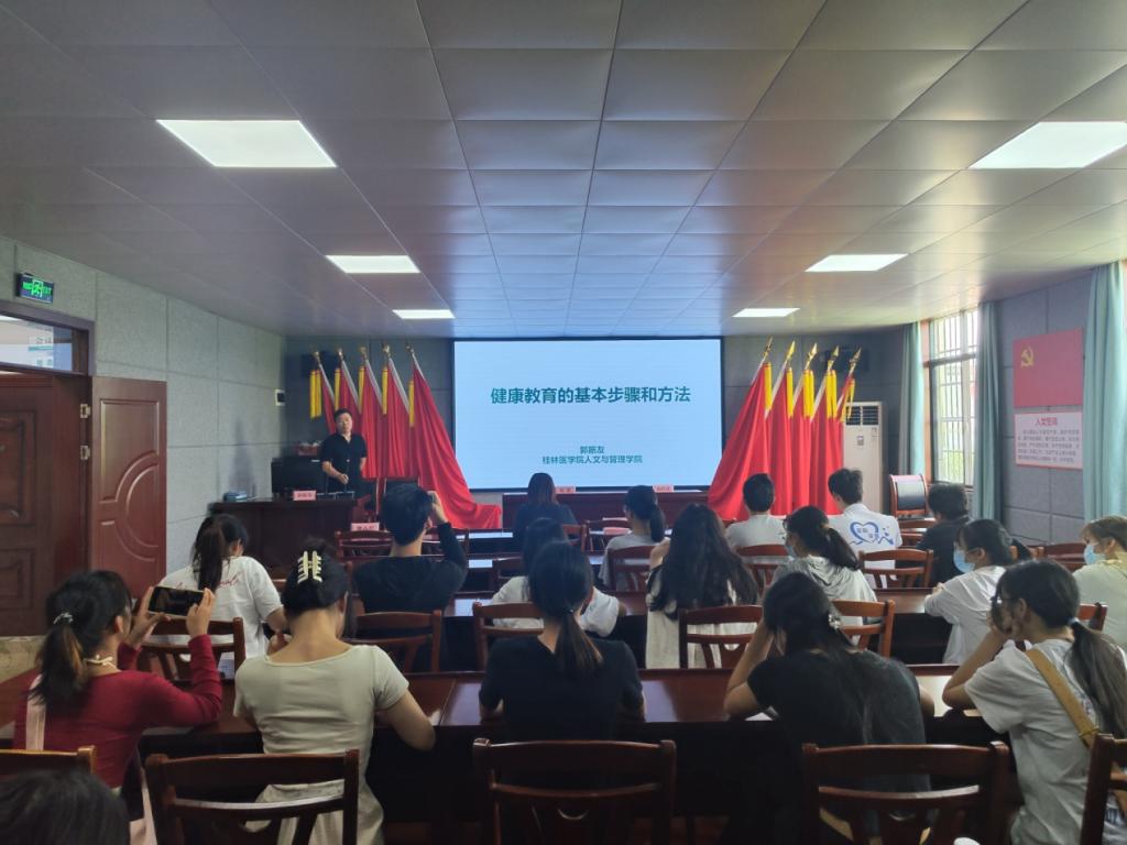 揭牌仪式后,桂林医华体(中国)人文与管理华体(中国)郭振友教授从健康教育的概念、常用的方法及其综合应用,“互联网+”时代的健康教育等方面,详细讲述了健康教育工作的基本步骤与教学方法。梁志清教授以《特定人群健康教育——健康血糖,拒做“糖人”》为题,以糖尿病为例,从疾病的临床表现、诊断、治疗和最新学科研究进展等方面,结合个人长期临床工作和援非医疗经历,就如何开展儿童、妇女和老年人等特定人群的健康教育进行讲解。一个多小时的讲座精彩纷呈,让在场师生、卫生院医务工作者、乡村医生收获颇丰。