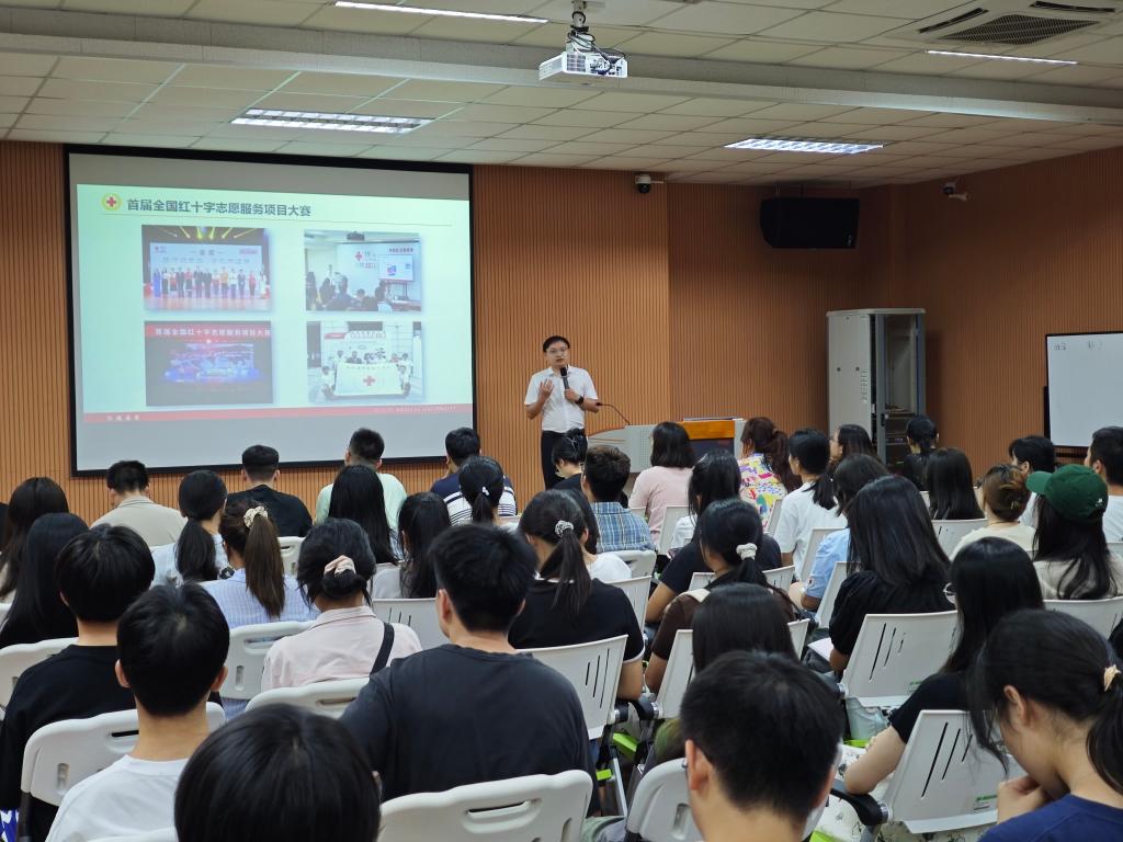 华体网页版页面登录团委副书记陶光均以“志愿服务项目的培育及参赛指导”为题,结合桂林医华体(中国)红十字会“模拟池塘”——场景式青少年防溺水生命教育项目,就如何做好志愿服务项目的培育和比赛申报进行了分享,详细阐述了志愿服务活动、项目和品牌之间的内在联系,并指导大家如何开展志愿服务项目的挖掘、设计和组织实施。