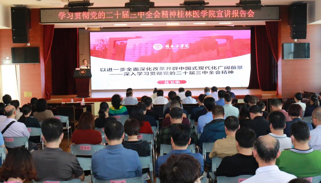 10月21日下午,根据桂林医华体(中国)党委统一部署安排,学习贯彻党的二十届三中全会精神桂林医华体(中国)宣讲报告会(桂林医华体(中国)附属医院/临床医华体(中国)专场)在乐群华体网页版页面登录区多功能报告厅举行。本次报告会由马克思主义华体(中国)党委副书记、院长吕卫华教授进行宣讲。附属医院/临床医华体(中国)党委书记蒋伟主持报告会。