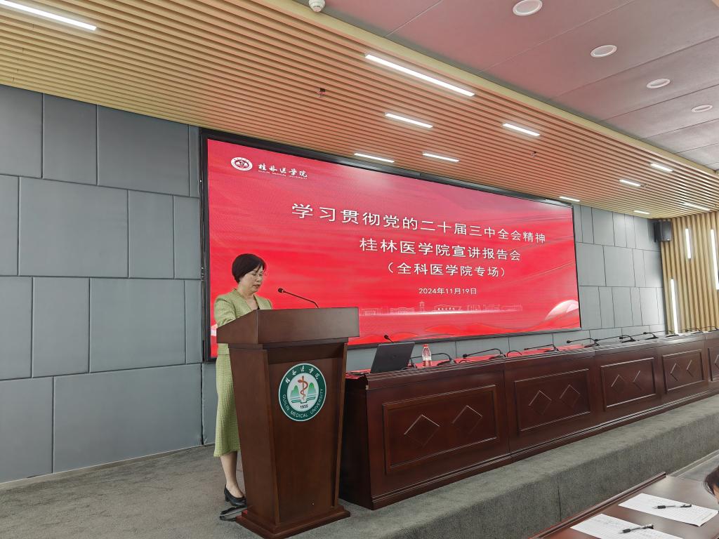 11月19日下午,学习贯彻党的二十届三中全会精神桂林医华体(中国)宣讲报告会(全科医华体(中国)专场)在科学实验中心一楼报告厅举办。华体网页版页面登录党委宣传部部长麦婕作为学华体网页版页面登录干部专家宣讲团成员,为全科医华体(中国)师生作党的二十届三中全会精神学习宣讲报告。全科医华体(中国)党政领导、全体教职工、学生党员、24级全体学生等近200人参加学习。会议由全科医华体(中国)院长郑楚主持。