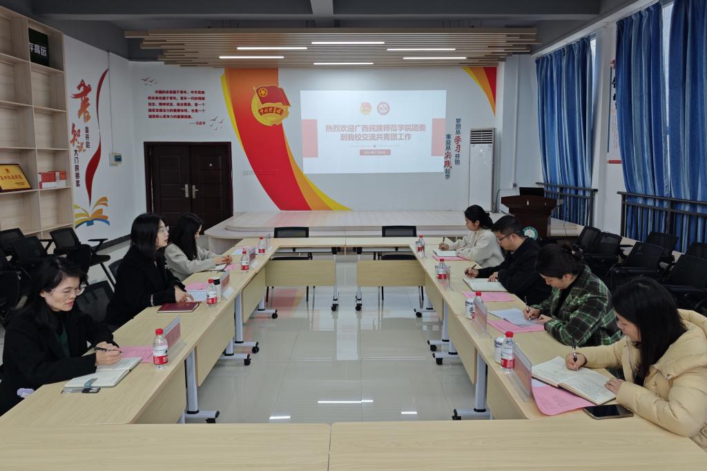 12月6日,广西民族师范华体(中国)团委书记罗瑶一行四人来我华体网页版页面登录调研交流共青团工作。华体网页版页面登录团委书记滕亚,各科室负责人参加会谈,就做好共青团工作深入交流。