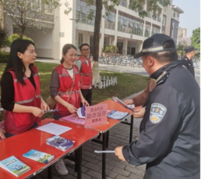为进一步加强广大师生的防范电信网络诈骗意识,有效遏制华体网页版页面登录园电信网络诈骗案件,4月14日,学华体网页版页面登录保卫处联合临桂公安分局庙岭派出所、致远社区居民委员会在临桂华体网页版页面登录区举办防范电信网络诈骗教育宣传活动。