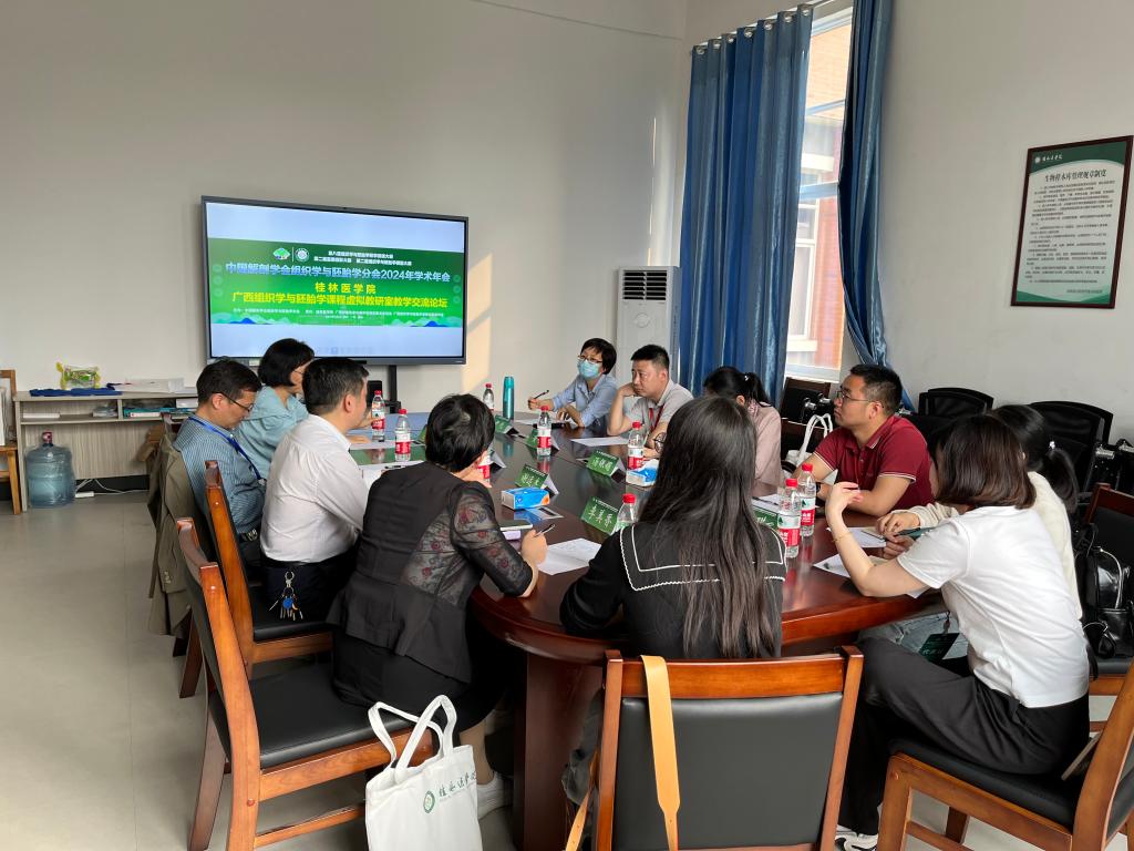 近日,我华体网页版页面登录承办的中国解剖学会组织学与胚胎学分会2024年学术年会在实验动物中心开辟分会场,举办了“广西组织学与胚胎学课程虚拟教研室教学交流论坛”,10余位来自南华大学、重庆中医药华体(中国)、湖南医药华体(中国)、湘南华体(中国)、邵阳华体(中国)等院华体网页版页面登录的组织学与胚胎学教研室的老师参加此次活动。