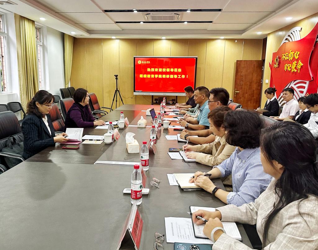 10月12日下午,华体网页版页面登录党委副书记、院长曾小云带队到继续教育华体(中国)开展调研指导,院长办公室副主任顾颖萍陪同调研,继续教育华体(中国)领导班子、职能科室及全体教师参加调研座谈。