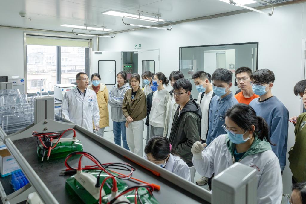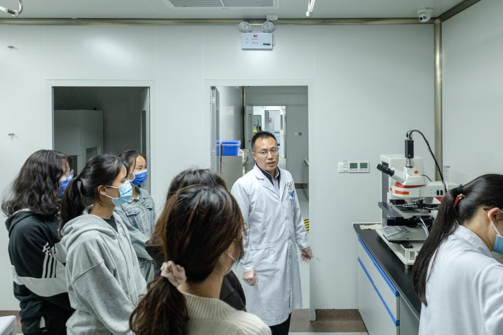第二附属医院中心实验室副主任侯显良带领学生参观了标本制备间、试剂准备区等多个功能实验室,让学生初步了解实验室工作环境。接着,他为学生详细介绍流式细胞仪、基因分析仪和细胞遗传技术平台等先进设备的工作原理及其应用领域,让学生进一步了解实验室的工作过程、工作内容。在体验的过程中,同学们认真听老师的讲解和介绍,对实验仪器表现强烈的兴趣,惊叹如今设备和技术的先进,对医务科研人员的工作有了进一步的了解。最后,同学们对中心实验室提出一些问题,侯显良耐心细致地作出解答,并进行相应的科研知识拓展。