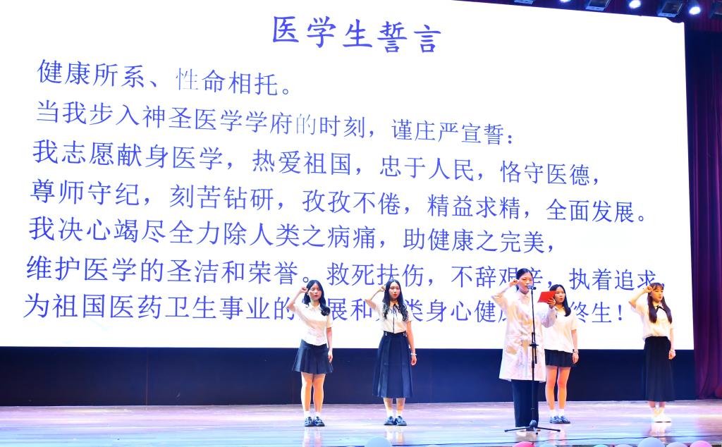 为勉励同学们在毕业后能够恪守医德、孜孜不倦、精益求精、全面发展,华体(中国)对获得自治区级、华体网页版页面登录级优秀毕业生的同学送上礼物并颁发证书。随后,全体成员宣读医学生誓言,晚会在师生铿锵有力的宣誓声中落下帷幕。