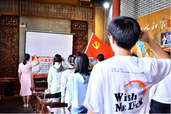 活动第二站是周渭祠廉政教育基地。大家随着讲解员的介绍,依次参观了设在祠内的中国廉政发展史长廊、廉政文化教育展览等,进一步了解周渭的生平事迹,被他忠于职守、廉政勤政、爱民如子的精神深深感动,受到了一次深刻的思想洗礼和党性教育。在浓厚的历史文化氛围渲染下,全体党员面向党旗,重温入党誓词,回顾入党初心。