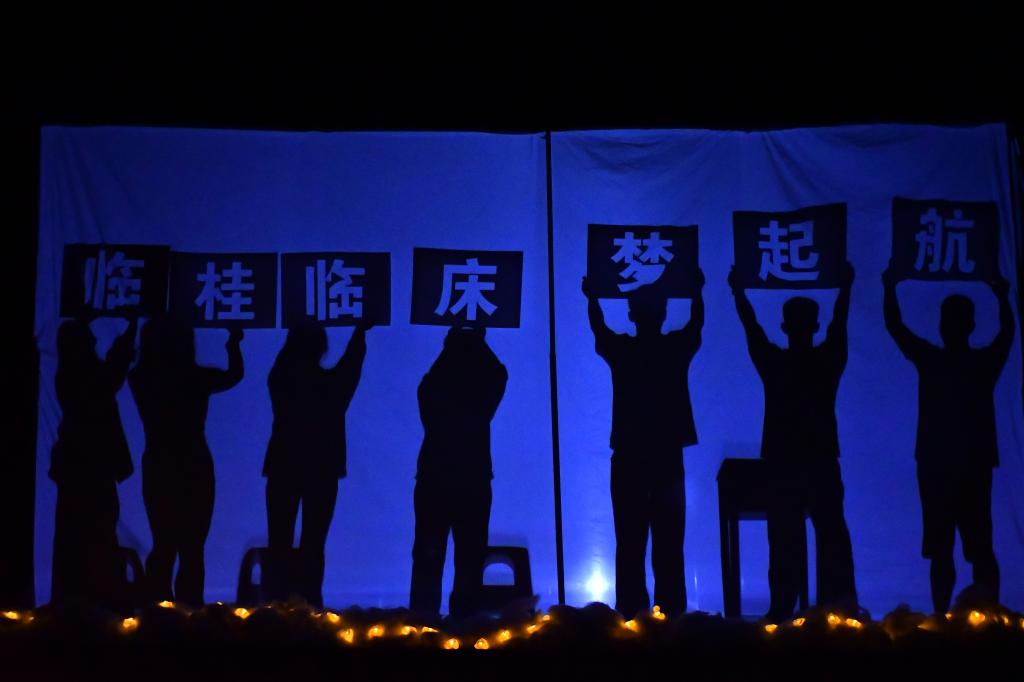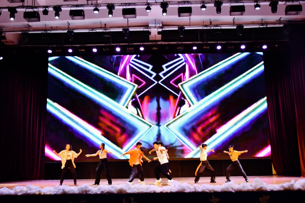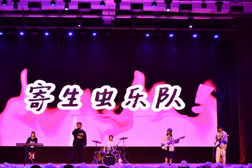 寄生虫乐队开场演唱的《一路向北》瞬间点燃了现场的气氛。随后,一个个精心准备的节目纷纷亮相。舞蹈《与你同行》《LESSERAFIM》洋溢青春活力,积聚坚韧力量;歌曲《不要忘记我爱你》《这世界那么多人》《想你时风起》《MY HEART WILL GO ON》,歌颂世间千爱,真情感动人心;情景诗朗诵《那年那时的英雄》,诵读英雄伟绩,表达崇高敬仰;光影剧《光影之旅》,浓缩你我经历,“影”动青春风采;歌舞《开心无极限,青春跃起来》《DANCING WITH MY SOUL》,彰显新生个性,注入热血灵魂。