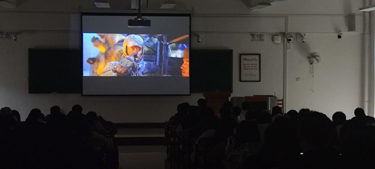 活动伊始,全体同学有序入场就座。在主持人宣布本次“传红色基因,共筑中国魂”主题团日活动正式开始之后,同学们在电影中战士们的一声声呐喊中开始了影片的观看。随着情节的推进,电影向我们展示了七连战士们英勇无畏、视死如归、报效祖国的赤子之心。他们为了完成对美军陆战一师的围歼,在结束了新兴里和下碣隅里的战斗之后,又立刻投入到水门桥的战斗之中。水门桥阻击战非常激烈,七连战士为了赢得胜利付出了极大牺牲,全场同学无不为他们的壮烈牺牲而动容。观影过后,由学生代表发言讲述观影感受。从学生代表的话语中,我们能感受到同学们对解放军战士的无畏精神,对中国魂的理解更加深刻,更加激发了我们学生的责任担当与家国情怀。