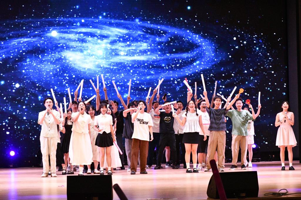 本次晚会以“青春不散,‘医’路前行”为主题。寄生虫乐队的开场歌曲《霓虹甜心》,瞬间点燃了现场的气氛。随后,一个个精心准备的节目纷纷亮相。歌曲《你就不要想起我》《就让这大雨全部落下》《空杯一舞》,唱响青春旋律,诉说离愁别绪;舞蹈《SHEESH》《ONE SPARK》《爱的“蛙”尔兹》,以及花球啦啦操表演《Every Time We Touch》,绽放青春活力,舞动精彩人生;光影剧《时光》,以及诗朗诵《那些年的日子》,追忆青春岁月,助力梦想远航。暖场互动游戏“看图识人”,播放华体(中国)毕业生的儿童照,将同学们拉回纯真年代,激励同学们不忘初心、牢记使命,奋斗向前不停歇。