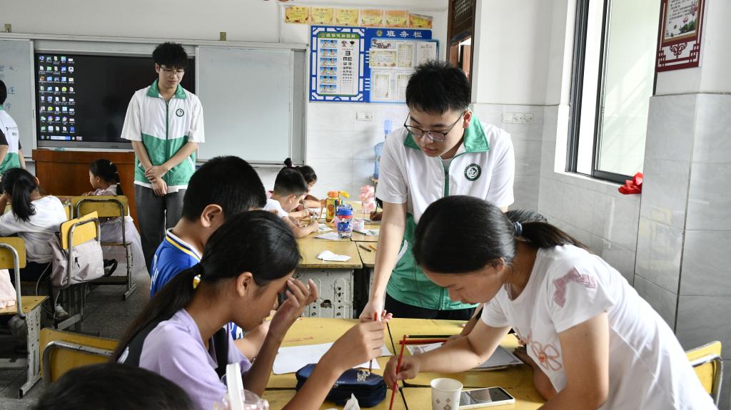 艺术推广组在九屋镇中心华体网页版页面登录、江柳村翁江小学,组织农村未成年人开展丰富多样的优秀传统文化传承和普及活动。团队成员带领孩子们完成书法、绘画、积木、彩泥等作品,大力弘扬中华优秀传统文化,铸牢中华民族共同体意识。