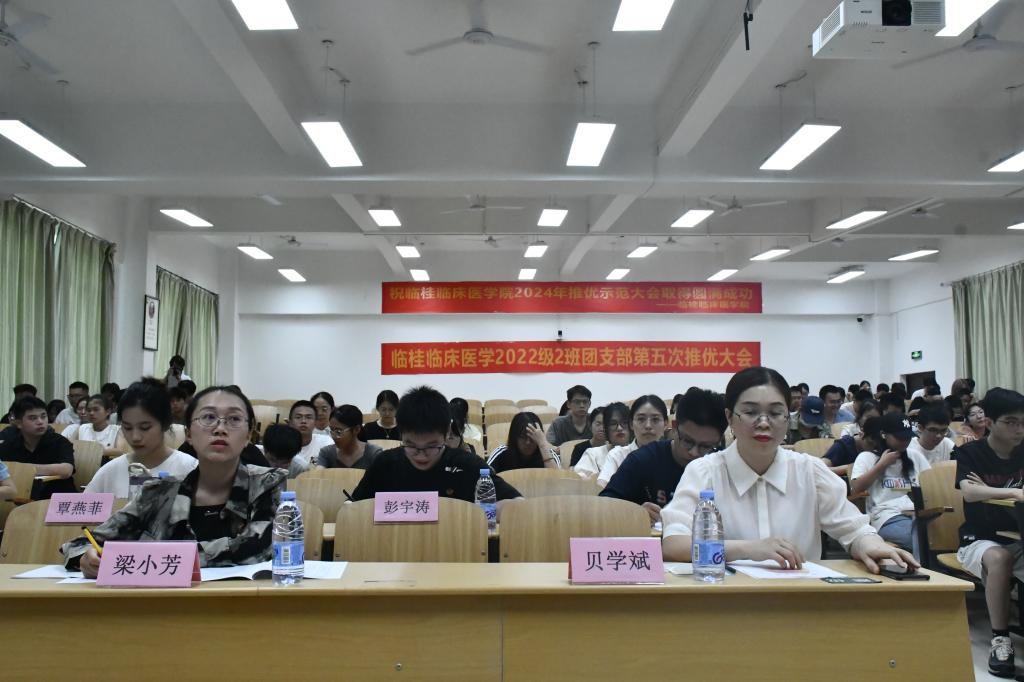 为树立“推优”工作模范,引导各团支部积极交流学习,帮助团干部熟悉和掌握推优大会的基本流程,9月28日14:30,临桂临床医华体(中国)在临桂华体网页版页面登录区教学北楼N404教室举行推优示范大会暨临桂临床医学2022级2班团支部第五次推优大会。大学生导师贝学斌、班主任梁小芳以及华体(中国)团委学生干部代表现场指导,2024级新生团支部代表观摩学习。