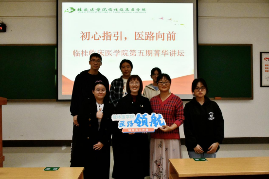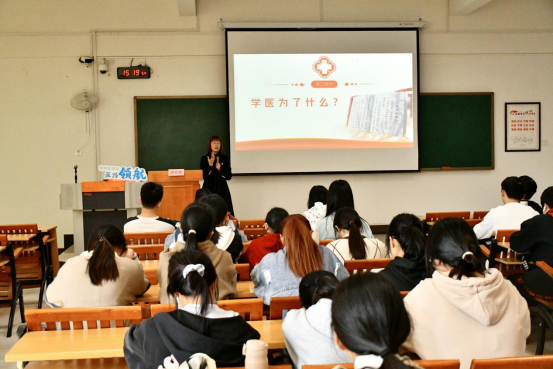 唐桂艳以“初心指引,医路前行 ”为主题,先用一系列朴实但颇有意义的问题如“你为什么学医”“学医为了什么”“作为医生我能做什么”引导同学们开始认真思考自己学医的意义。接着,她用自己的亲身经历生动且感人地向同学们分享了自己从事医学所获得的提升和得到医患家属肯定的喜悦。同时,她结合自身经验及其学习成果与贡献,告诫同学们要坚定学医的信念,完善医学知识体系,不忘初心,抓住宝贵的实习机会,规划好自己的医学之路,为早日成为一名优秀的人民医生而不断努力。最后,在自由交流和提问环节中,老师耐心地解答了同学们关于学习、生活和如何更好参与到医学实践等方面的提问,同学们收获颇丰。