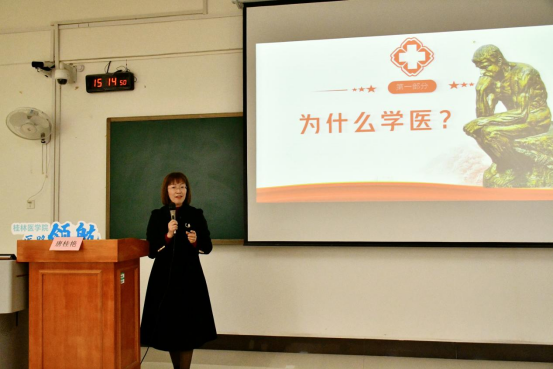 为进一步提高学生的专业素养和道德水平,坚定理想信念,在“弘德善医”的道路上稳步向前,2023年11月28日下午,临桂临床医华体(中国)在临桂华体网页版页面登录区教学北楼N307教室举行“初心指引,医路前行”第五期菁华讲坛活动。本次讲座由桂林医华体(中国)第二附属医院盆底医学中心负责人唐桂艳主讲,学工办主任蒋艳平及学生代表约150人参加此次活动。
