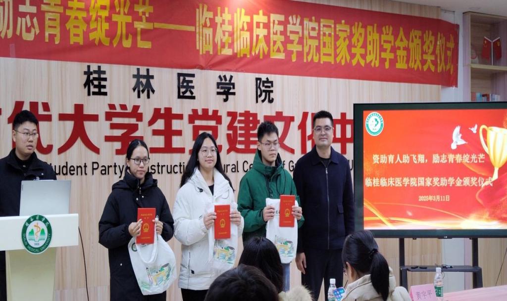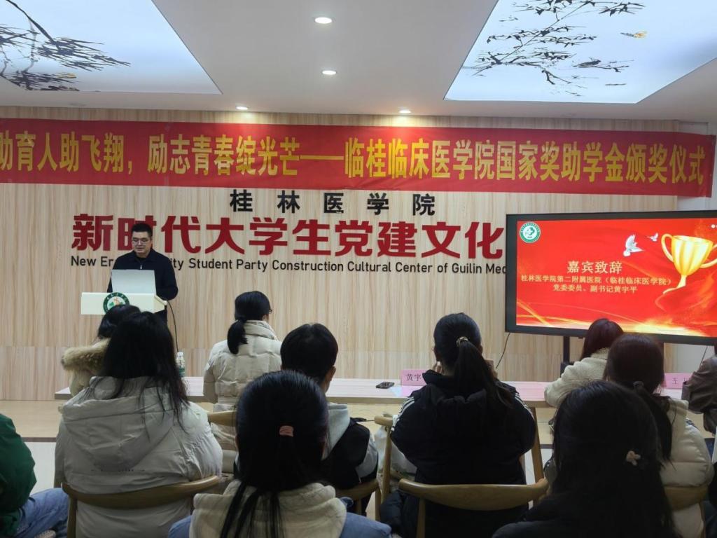 为深入贯彻国家资助政策,充分发挥其育人功能,激励广大学子奋发向上,追求卓越,2025年3月11日下午,临桂临床医华体(中国)在新时代大学生党建文化中心举行2025年度国家奖助学金颁奖活动。桂林医华体(中国)第二附属医院(临桂临床华体(中国))党委副书记黄宇平、学工办全体辅导员以及荣获国家奖学金、国家励志奖学金和区人民政府奖学金的优秀学生代表出席本次活动。