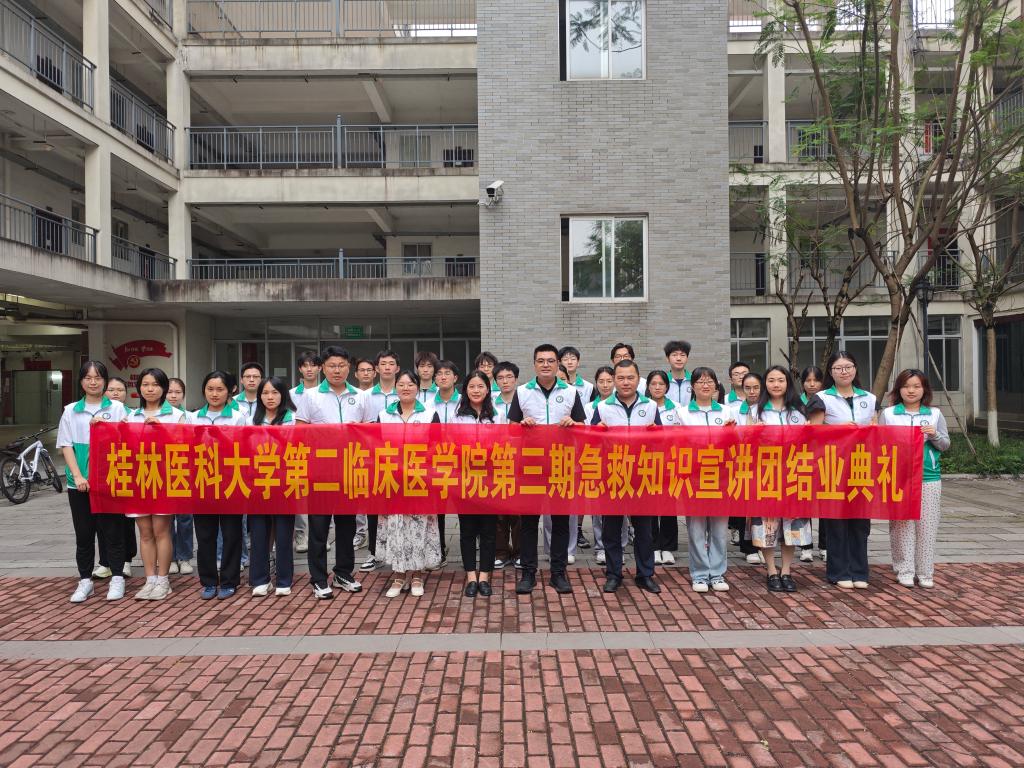 为深入贯彻习近平总书记关于健康中国建设的重要论述精神,全面贯彻党的二十大和二十届二中、三中全会精神,弘扬“奉献、友爱、互助、进步”的志愿服务精神,2025年5月8日,第二临床医华体(中国)在临桂华体网页版页面登录区新时代大学生党建文化中心举行第三期菁华急救知识宣讲团结业典礼。桂林医科大学第二附属医院(第二临床医华体(中国))党委副书记黄宇平,医联体、医共体主任兼感染管理科科长黄剑伟,学工办全体老师出席本次活动,第三期菁华急救知识宣讲团学员参与本次活动。