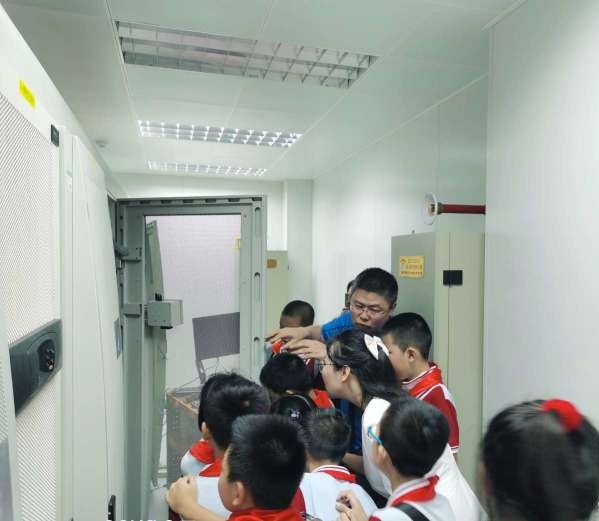 活动第二站,充满现代化气息的机房。由信息中心刘承智副主任带领孩子们参观学习。在这里,孩子们了解了平时用的WiFi是如何传输的,知道了一些平时不怎么接触到的新鲜词汇,体会了现代科技发展的日新月异。进一步激发了孩子们的好奇心与求知欲,在同学们心中播下了一颗颗关于科学的种子。