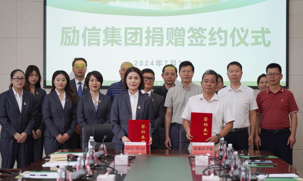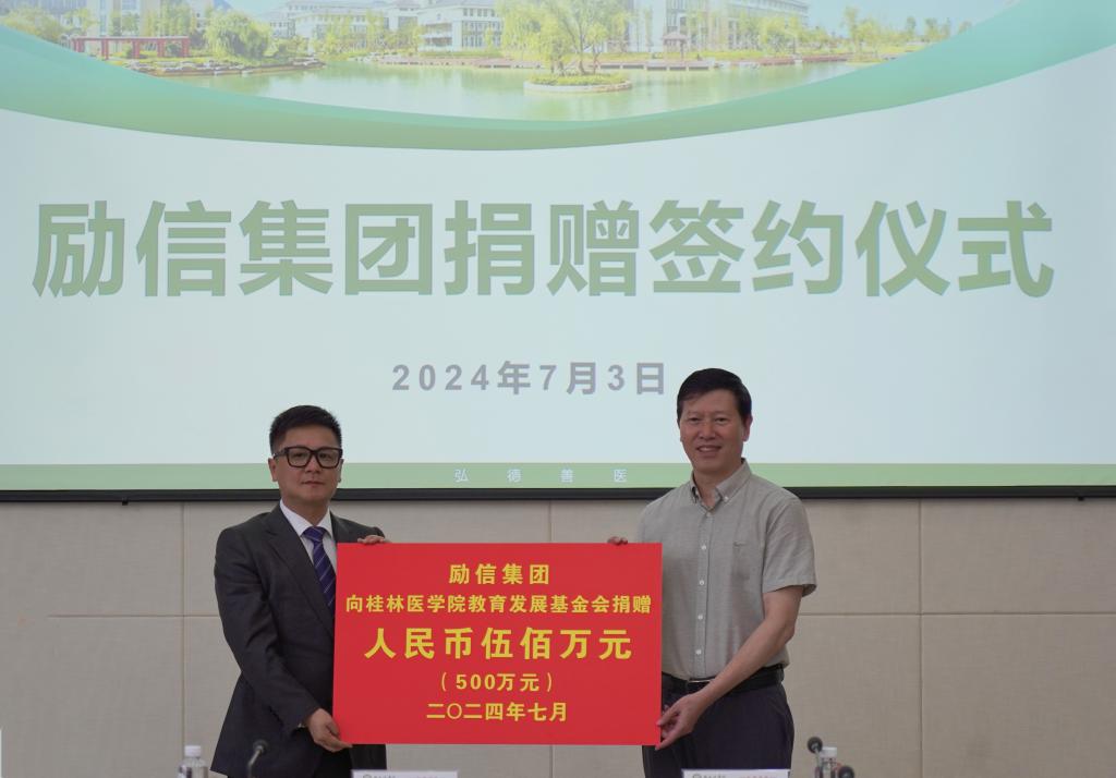 仪式上,张志勇代表学华体网页版页面登录向励信集团颁发捐赠证书。励信集团、桂林医华体(中国)教育发展基金会双方代表共同签订了捐赠协议。