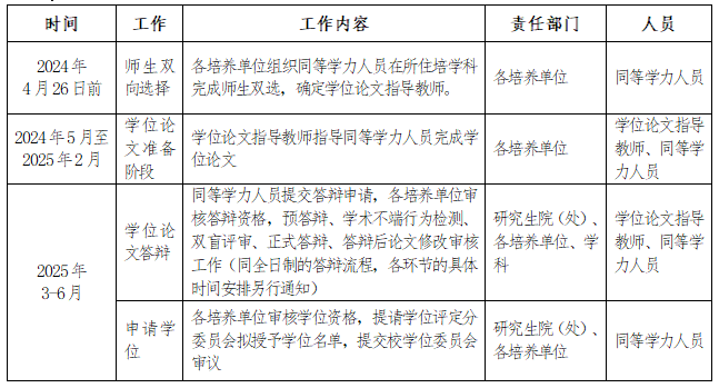 现就同等学力人员进入学位论文工作阶段相关事宜通知如下: