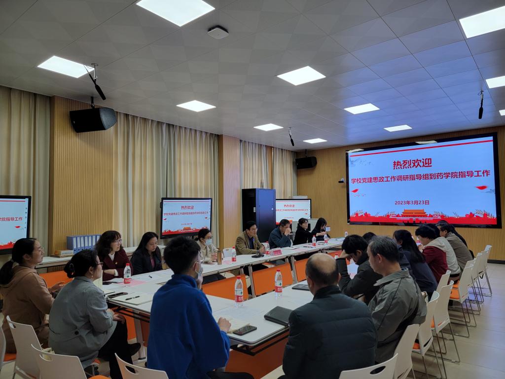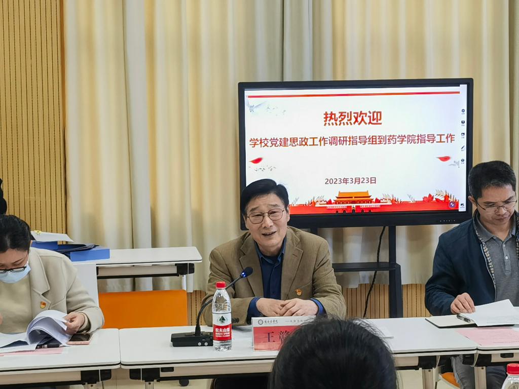 为不断提升我华体网页版页面登录党建思政工作水平,推进党建思政工作创新发展,发挥党建示范引领作用,3月23日下午,华体网页版页面登录党委副书记王赣华带队到药华体(中国)开展党建思政工作双随机调研指导工作,学华体网页版页面登录纪委、党委组织部、宣传部、党委办公室、统战部相关同志陪同调研。药华体(中国)党政领导、组织员、支部书记代表、学生党员代表参加会议。
